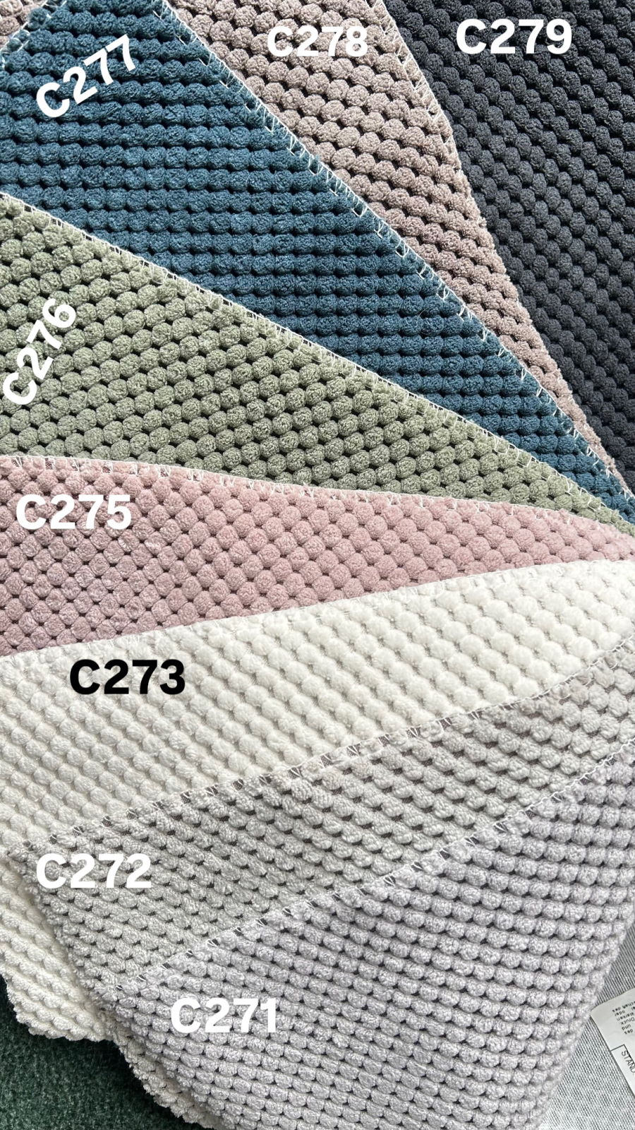 Tapiteria este realizata din stofa durabila, usor de intretinut, cu o textura placuta la atingere. Picioarele coltarului sunt din plastic negru, oferind stabilitate si un contrast subtil cu nuanta canapelei.