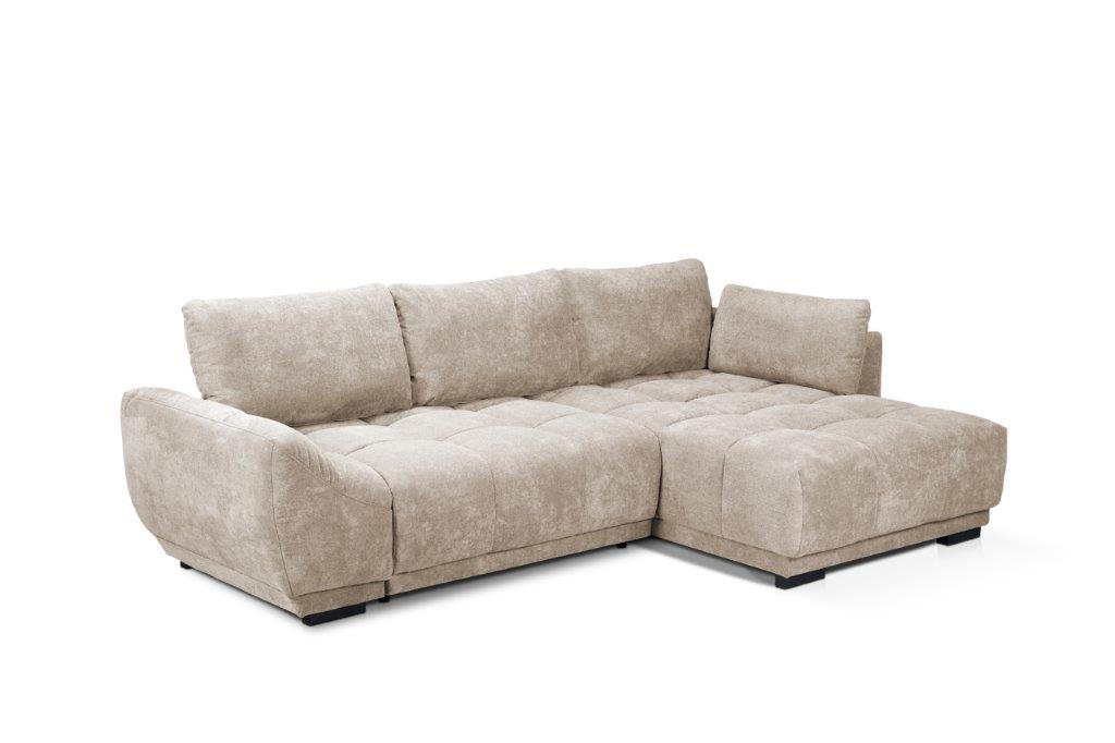Extensibilitate Practică: Colțarul RUMBA se poate extinde cu ușurință, transformându-se într-un pat confortabil cu dimensiunile de 208 x 130 cm. Această caracteristică îl face ideal pentru momentele când aveți oaspeți care rămân peste noapte. Spațiu de Depozitare Integrat: Sub sezut, colțarul dispune de un spațiu generos de depozitare, perfect pentru a păstra perne, pături sau alte obiecte esențiale. Aceasta adaugă un plus de funcționalitate și ajută la menținerea ordinii în livingul dvs. Configurabilitate: Colțarul se poate comanda pe stânga sau dreapta, în funcție de preferințele și nevoile dvs., asigurându-se astfel o adaptabilitate maximă la spațiul disponibil.